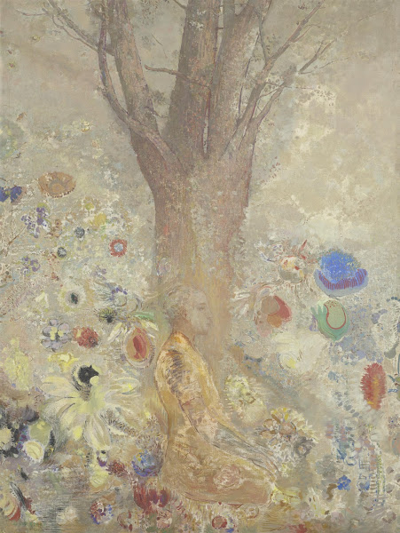 The Buddha figure sits in the lotus position under a tree and almost seems part of it. Redon has achieved this effect by using little more than a few outlines to depict it. The artist was deeply interested in eastern spirituality. To give the picture a fresco-like appearance, Redon has chosen a particularly matt sort of paint. He intended the painting to be countersunk into a wall, making it an integral decorative feature of an interior.