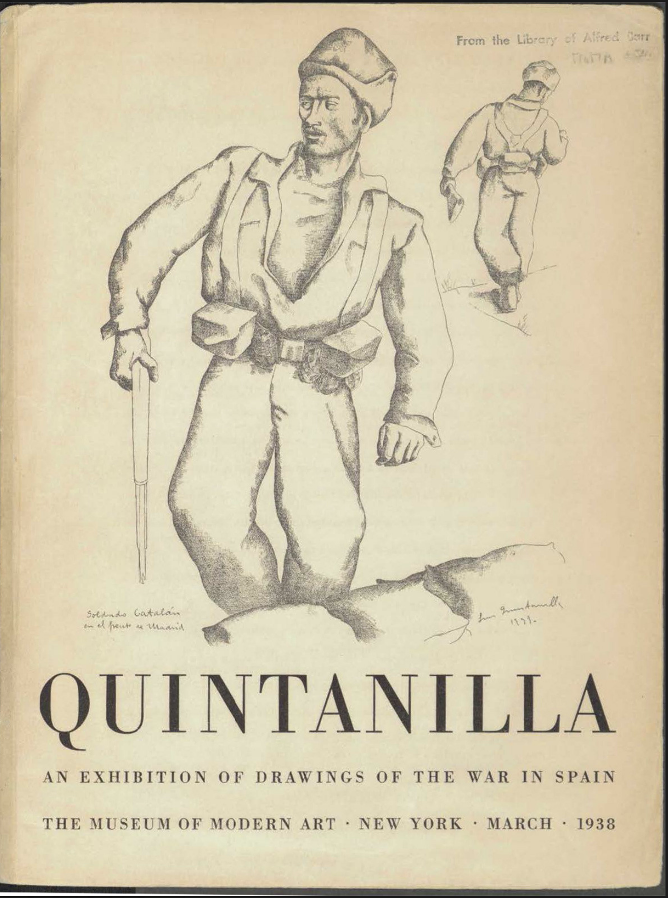 - Retrieved from the MoMA Press Release: The Exhibition of War in Spain consists of about 75 drawings of the Spanish Civil War by Luis Quintanilla, who left Teruel in January 1938 to come to this country. Ernest Hemingway has supplied the foreword for the folder the Museum is publishing in conjunction with the exhibition.