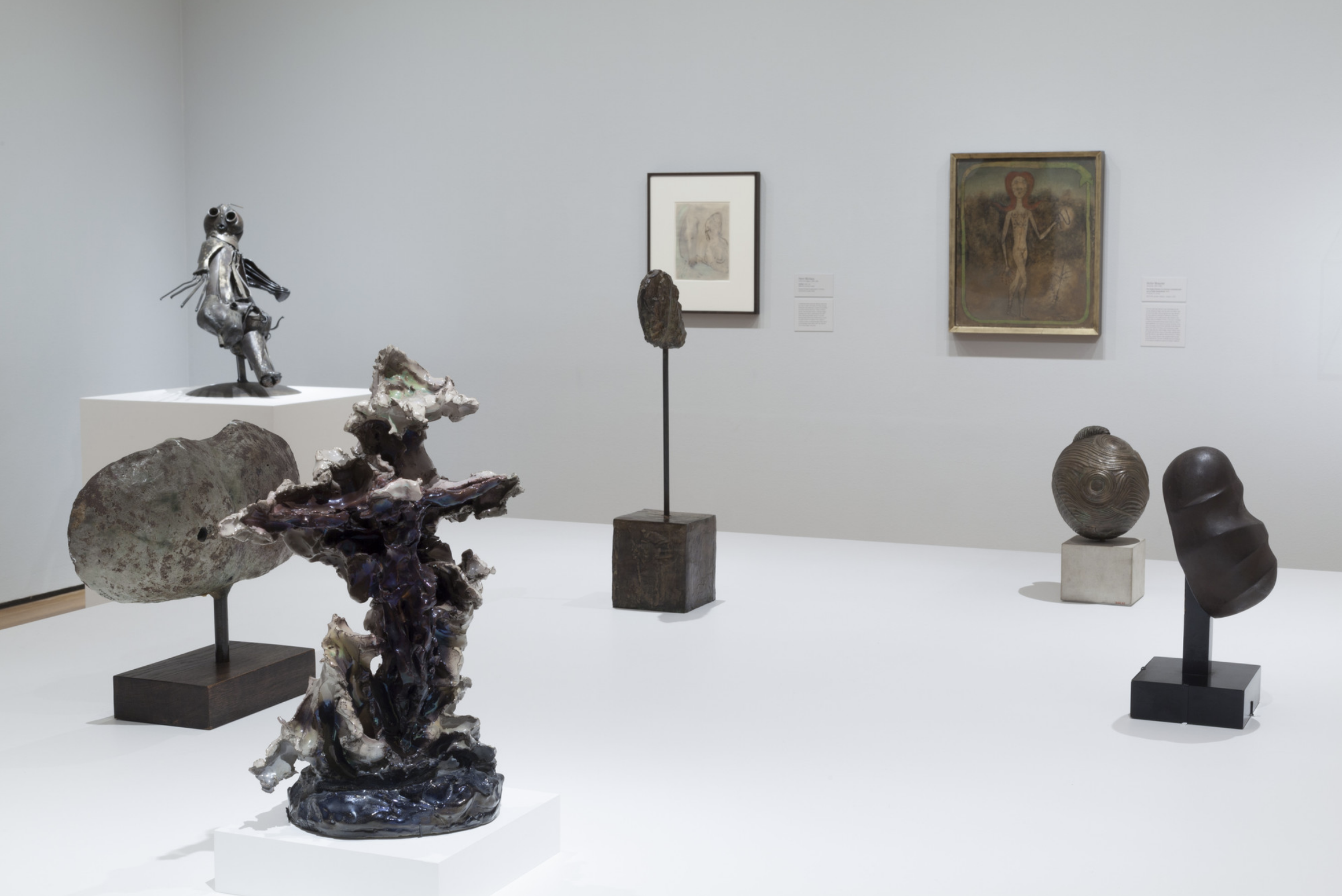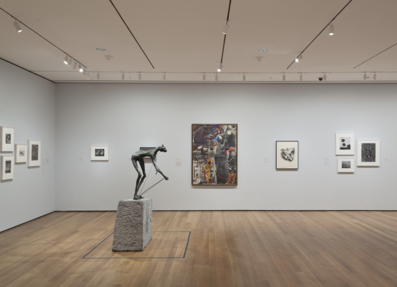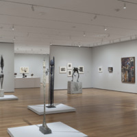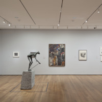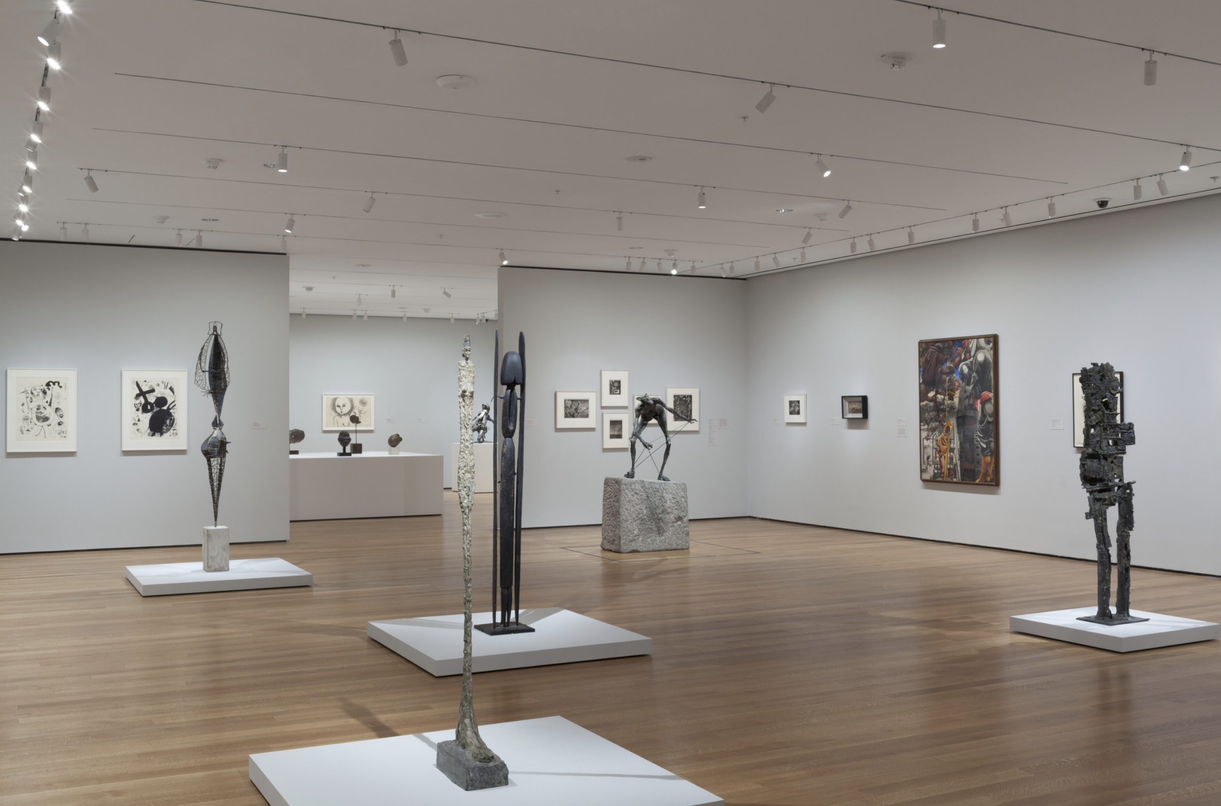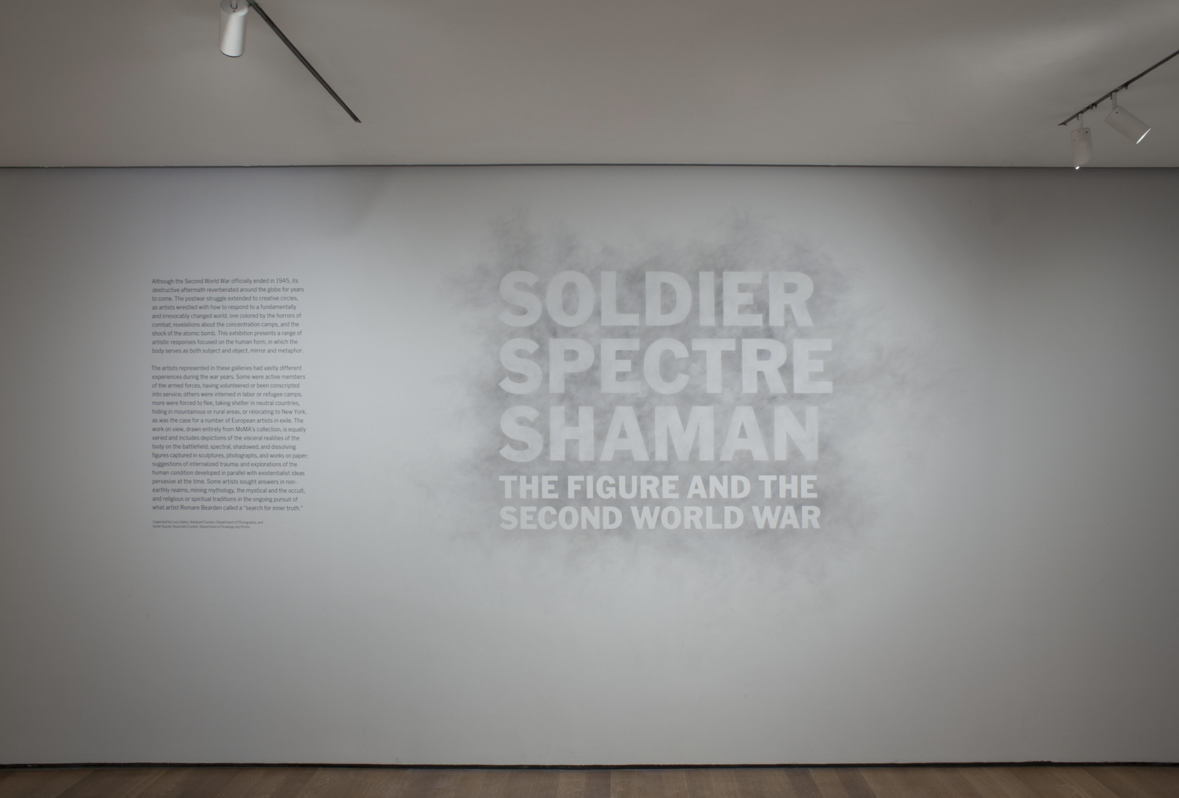 - The years surrounding World War II posed a creative and existential crisis, as artists struggled to respond to human, social, and cultural conditions in the wake of the horrors of combat, images of concentration camps, and the aftermath of the atomic bomb. Drawn entirely from MoMA’s collection, Soldier, Spectre, Shaman presents a range of artistic responses focused on the human figure, with the body serving as subject and object, mirror and metaphor. The exhibition features work in a variety of mediums by more than 30 international artists, including prints by David Smith and Chimei Hamada that confront the visceral realities of the battlefield landscape; Alberto Giacometti’s and Louise Bourgeois’s sculptures of spectral, shadowed, or dissolving bodies; Shomei Tomatsu’s post-atomic bomb photographs; and visions of mystical, divine, or otherworldly forms by Henri Michaux, Henry Darger, and Jeanne Reynal.
