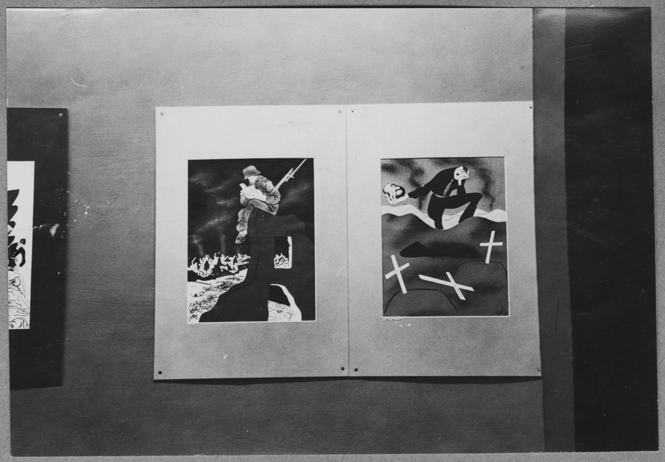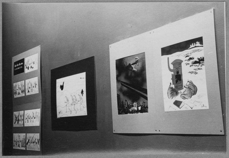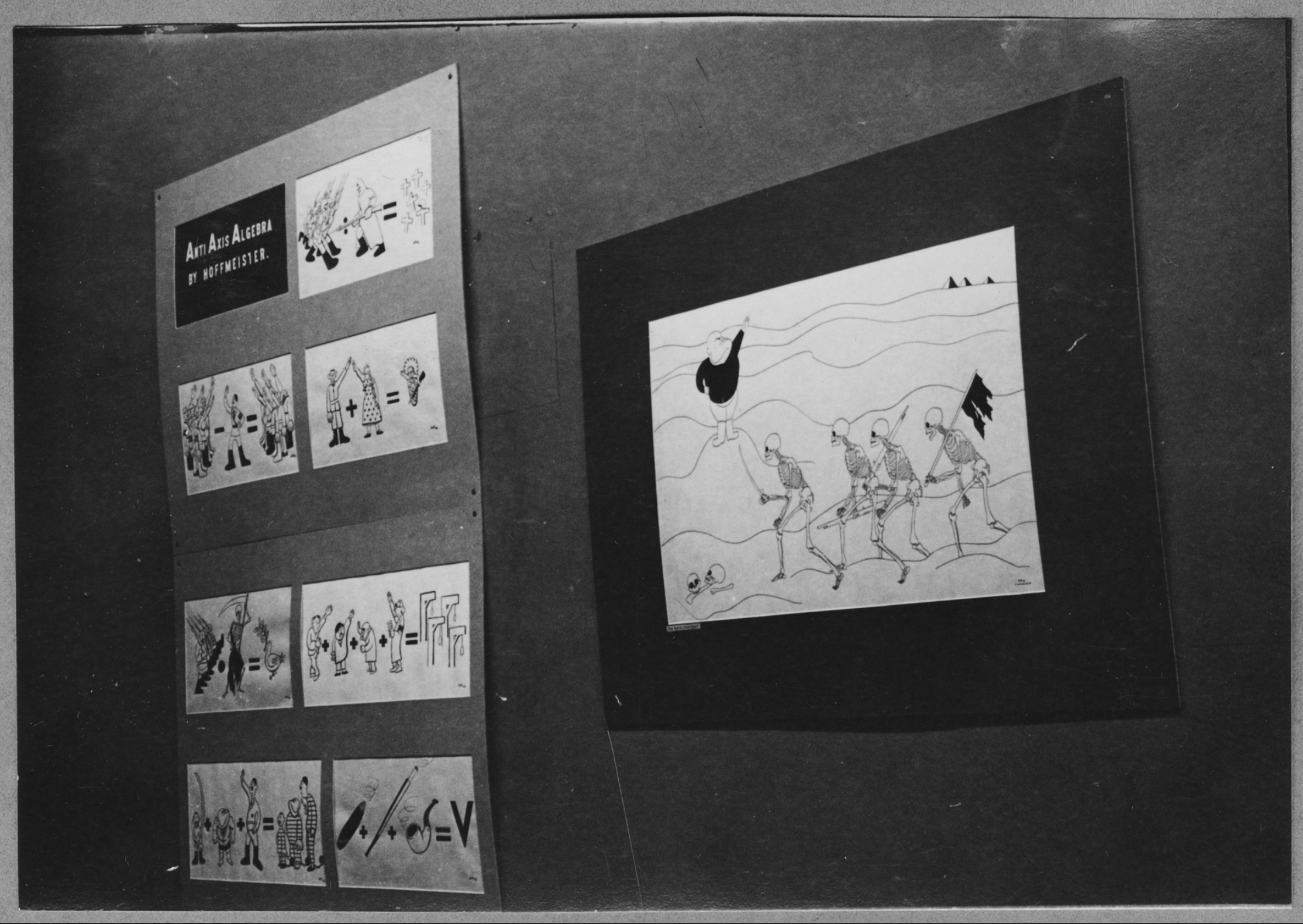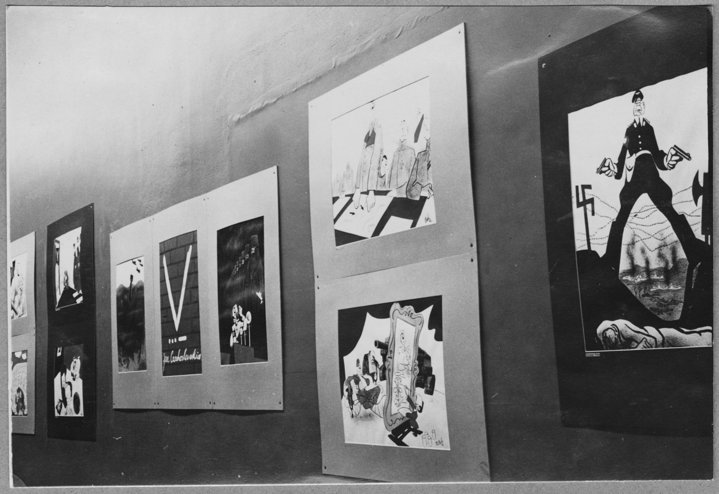 - Retrieved from the MoMA Press Release: The war caricatures, by Adolf Hoffmeister and A. T. Peel, are being shown at the Museum for the first time anywhere. About forty in number, they constitute a savagely brilliant attack on the Axis partners, principally the Nazis, impaling them on barbs of ridicule. The exhibition will remain on view through July 11 and will then be sent on a tour of other museums and art galleries by the Museum's Circulating Exhibitions Department.