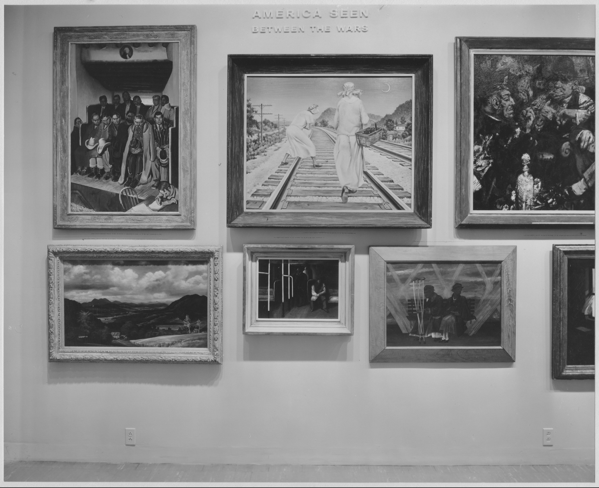 - Retrieved from the MoMA Press Release: "America Seen - Between the War," the second in a series of shows drawn entirely from the Museum of Modern Art's own collection, will open on April 25. Most of the 40 paintings from the 1920s and 30s in the exhibition have been in inaccessible storage owing to lack of space. They are double-hung in one gallery in order to emphasize the Museum' s need for an additional building with increased gallery and study-storage facilities, a goal of the current fund raising drive.