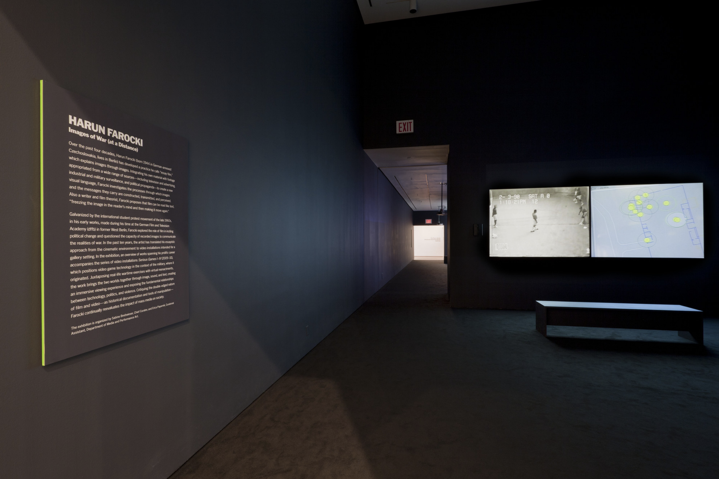 - Retrieved from the MoMA Press Release: Harun Farocki: Images of War (at a Distance) marks the first comprehensive solo exhibition of Berlin-based artist Harun Farocki (b. 1944, German-annexed Czechoslovakia) in a U.S. museum, and features the U.S. premiere of Serious Games I–IV (2009–10), a four–part video installation at the center of the exhibition. The exhibition reflects a recent large-scale acquisition—realized as a joint effort by MoMA’s departments of Media and Performance Art and Film—of 36 artworks, a body of work spanning four decades and including nearly all of Farocki’s videos, video installations, and films in video format.