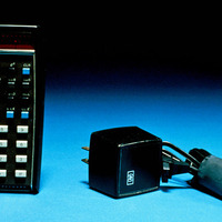 The HP-35 was the first handheld electronic calculator to compute all the functions represented on a slide rule. It has a black plastic case and a total of thirty-five square or rectangular plastic keys. These include ten digit keys, a decimal point key, and a pi key, all colored tan. In addition there are four arithmetic function left of the digit keys, a relatively long enter key, a change sign key, and enter exponent key, a clear x key, and a clear key, all in blue. Additional black keys are for powers, logs to base ten, natural logs, exponents, square roots, trigonometric functions (sine, cosine, tangent and the inverses of these), simple inverses, exchange, roll down, store, and recall. Above the keys is an on/off switch. There is no hole next to the switch to indicate that the display is on, as there was in the very first HP-35 calculators. Behind the switch is a red LED display that shows results. Numbers with absolute value between one hundredth and 10 billion are given in decimal form. Smaller or larger ones appear in scientific notation, with the appropriate power of ten occupying the three rightmost digit places (two for digits, one for a sign). The negative sign for the result, if needed, is at the far left.