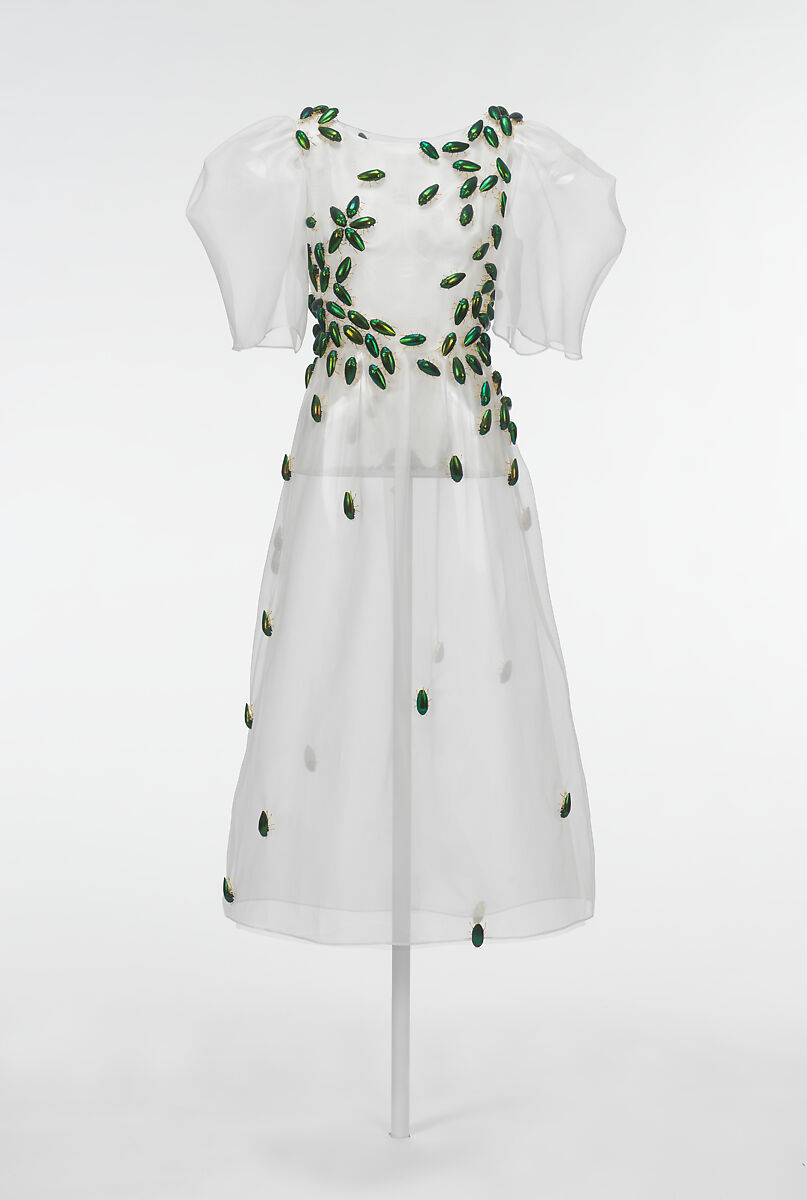 Dauphinette created this custom silk organza dress with hand-placed metal "beetles" for their fall/winter 2022-2023 collection. The dress was featured in Sleeping Beauties: Reawakening Fashion, an exhibition at the Metropolitan Museum of Art's Costume Institute in 2024.